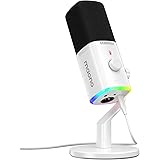 MAONO XLR USB Micrófono para Gamer: Micrófono Dinámico RGB con Software para Streming Podcast Grabación de Voz Youtube, MICR PC con Cancelación de Ruido, Silencio, Ganancia, PD100X (Blanco)